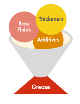 Greases are generally made up of three components: base fluid, thickener and additives.