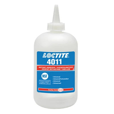 Loctite 4011 is a low viscosity, ethyl-based instant adhesive for the assembly of difficult-to-bond materials which require uniform stress distribution and strong tension and/or shear strength.