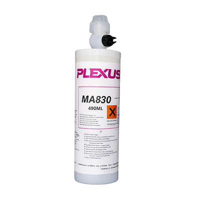 Plexus MA830 is a two-part methacrylate adhesive designed for structural bonding metals without primers and is is recommended for ABS, Acrylics, FRP, Gelcoats, Steel, Carbon, PVC, Polyester, Styrenics, Urethanes, Vinyl Esters and Aluminium.