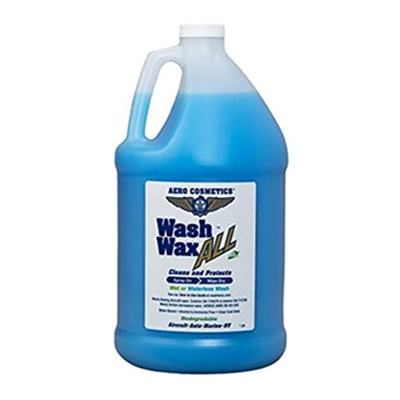 Aero Cosmetics WashWax All is an all-in-one Waterless Wash cleaner for the dry washing and waxing of aircraft, removing dirt without scratching. Supplied in a various sized bottles.