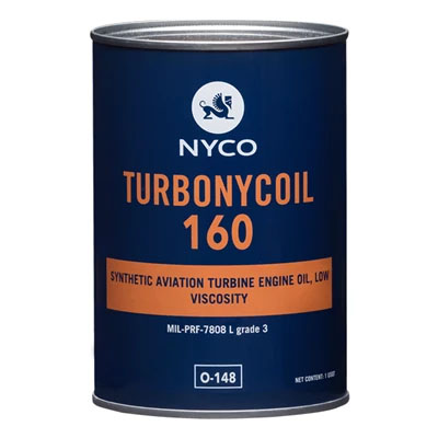 Nyco Turbonycoil 160 is a synthetic aviation turbine oil that has been fortified with anti-oxidant, anti-corrosion and extreme-pressure properties.