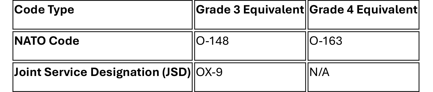 In certain applications, MIL-PRF-7808 (Grade 3 or 4) can be cross-referenced to the following international and industry specifications and codes: