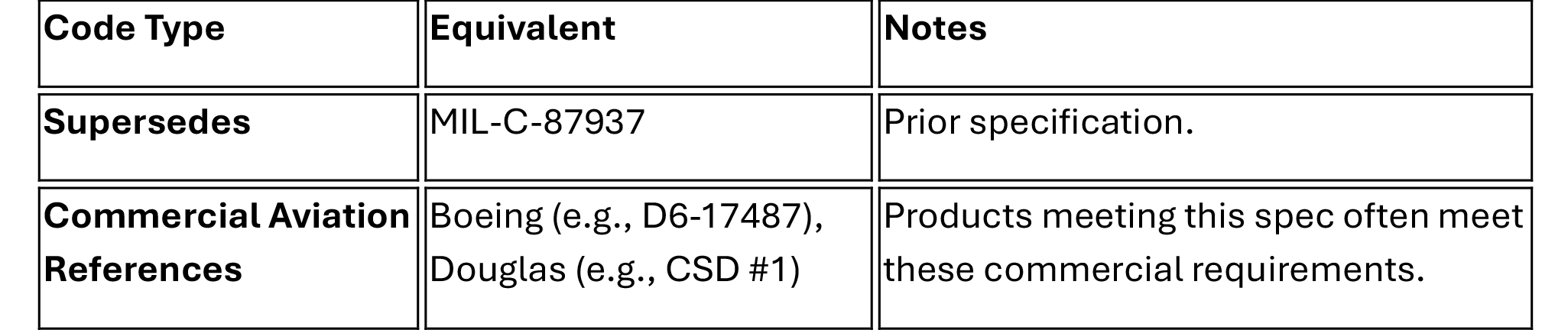 MIL-PRF-87937 doesn't have a single common international NATO Code but is widely referenced by commercial aviation specifications due to its environmental focus and effectiveness.