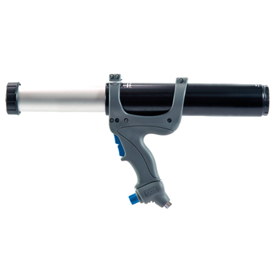 This product features a rod-driven plunger, a built-in silencer and a variable speed regulator. It is fitted as standard with a 100psi regulator. It prevents cartridges ballooning and offers precise control and smooth material flow, with easy adjustment between bead and spray. It is typically used in bonding and sealing applications.