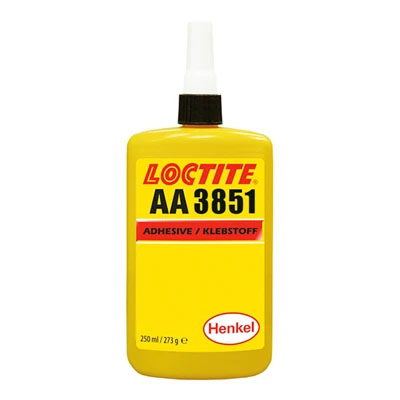 Loctite AA 3851 is a urethane methacrylate acrylic adhesive used for bonding glass to metal, particularly where some parts of the bondline are shaded from UV light.