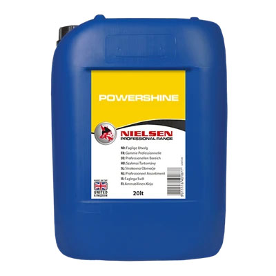 Nielsen Powershine is a concentrated alkaline detergent formulation designed to attack stubborn grim and soiling found in vehicles used in the heavy haulage industry. Supplied in various sizes.