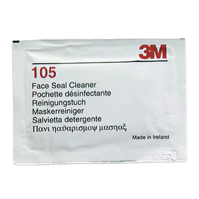 3M Face Seal Cleaner 105 is an individually wrapped wipe for cleaning and freshening a reusable mask without damaging them.