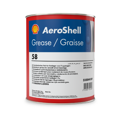 AeroShell Grease 58 is an advanced general purpose and wheel bearing grease composed of a synthetic base fluid and a lithium complex soap thickener.