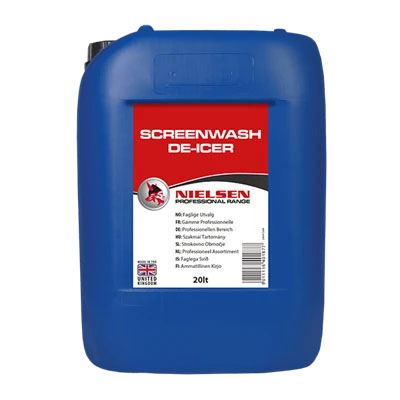 Nielsen Screenwash De-Icer is a dual-purpose windscreen wash solution and de-icer, combining detergents and solvents to effectively remove stubborn grease, dirt and fly residues from windscreens. Supplied in various sizes.